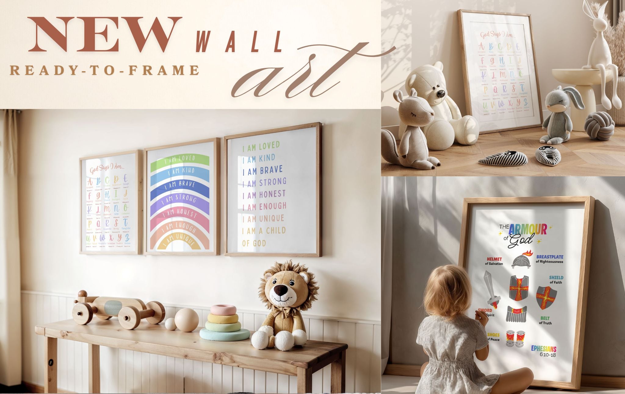 Perfect for children’s bedrooms, nurseries, Sunday school classrooms, or family prayer corners, these physical prints make it easy to surround your home with God’s truth. Available in multiple sizes and styles, they are thoughtful gifts for birthdays, baptisms, or simply to remind loved ones of who they are in Christ. 🙌✨